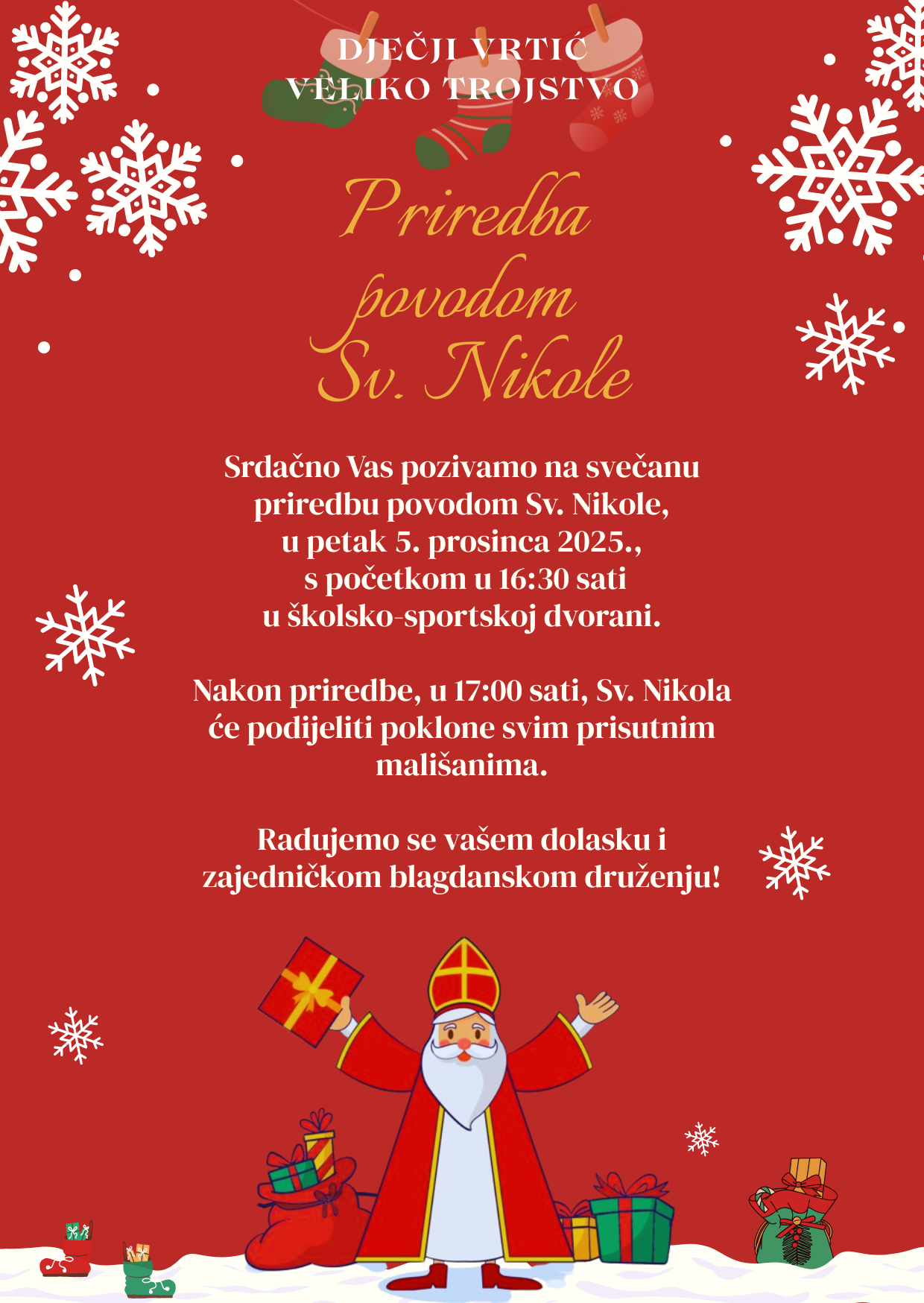 Pozivnica povodom priredbe za Svetog Nikolu - Dječji vrtić Veliko Trojstvo