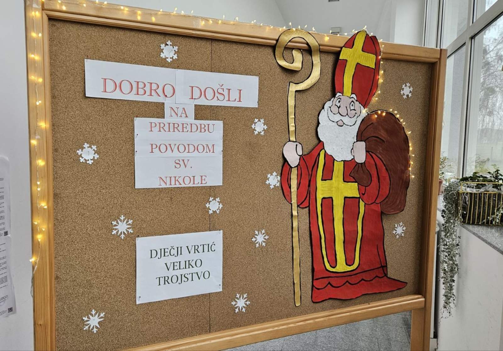 U petak, 5. prosinca 2025. godine, djeca iz Mješovite I. i Mješovite II. odgojno-obrazovne, zajedno sa svojim odgojiteljicama, te djelatnicama vrtića i djecom iz Programa predškole (djeca koja nisu polaznici našeg vrtića) izvela su priredbu povodom Svetog Nikole. Na priredbi su prisustvovali brojni roditelji i djeca sa područja Općine koja ne pohađaju naš Vrtić, ali i brojni drugi uzvanici. Djeca su nestrpljivo dočekala dolazak Svetog Nikole... Bogate i prikladne poklone koje je podijelio Sveti NIkola i ove godine osigurala je Općina Veliko Trojstvo.